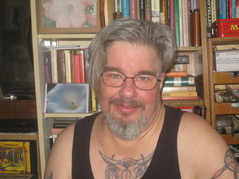 They are a Two-spirit Mi’kmaq person with light skin, grey hair, light eyes, and a